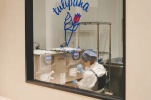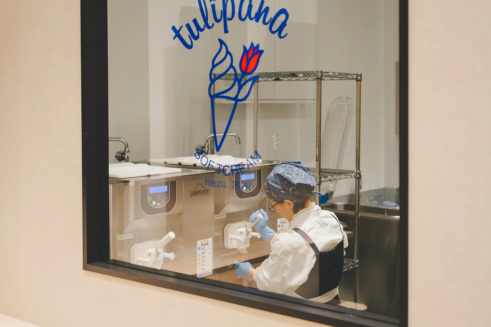 tulipanaでは、牛乳などの材料を一から丁寧に炊き素材の味を生かした、風味豊かなソフトクリームをお店で手作りします。